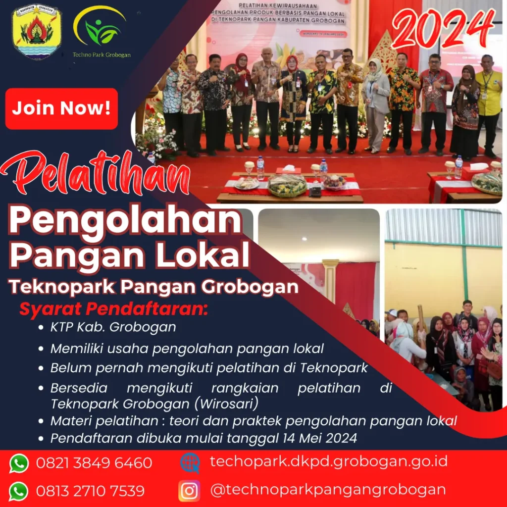 Grobogan, 8 Oktober 2025, dalam rangka meningkatkan layanan dan peningkatan pemasaran produk pangan lokal binaan, Technopark Pangan Grobogan menyelenggarakan kegiatan Pelatihan Peningkatan Pemasaran Produk Pangan Lokal di Technopark Pangan Grobogan. Kegiatan ini diikuti oleh peserta berjumlah 30 orang. Kegiatan dilaksanakan di Ruang Pelatihan Gedung Utama Technopark Pangan Grobogan Desa Dapurno, Kec. Wirosari, Kab. Grobogan, Jawa […]